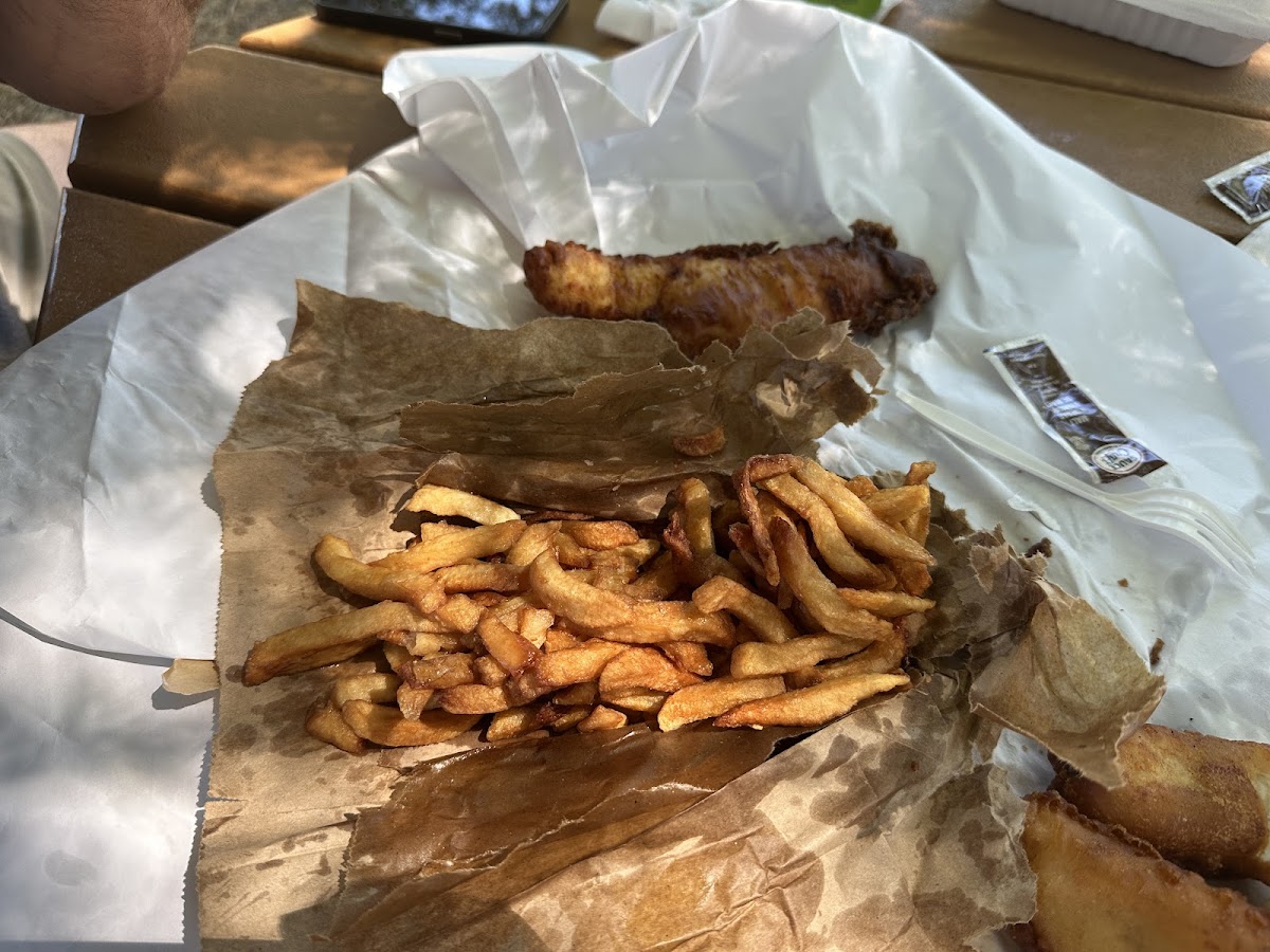 Small shop that packs a lot of taste for an affordable price. We had the 6-fish family pack with fries to-go. Walked by the river and had our lunch there. Beautiful scenery to relax and enjoy our food. Batter was so good, crispy and somewhat sweet like eating a nice piece of bread. Lots of fries and the fish was good size. We’re definitely keeping this on our list of places to pass by for lunch.