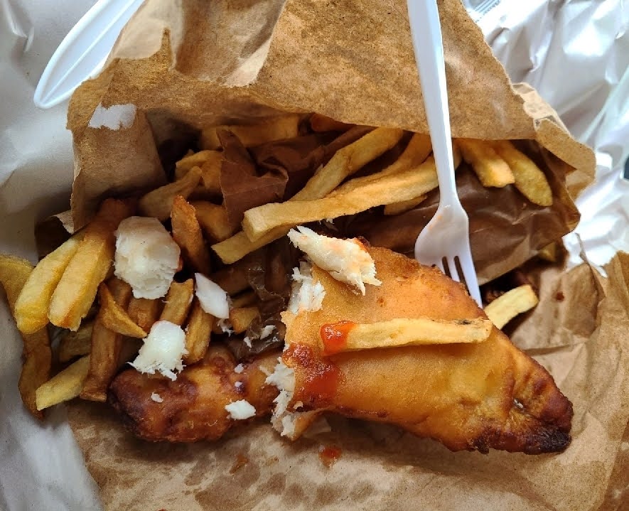 Visited in August and had a great experience. Authentic fish and chips like I remember as a kid. The lady in the shop directed us to a nearby park with shady picnic tables to enjoy our food. My husband and I shared fish and chips and other family members had the dill pickle poutine. It was all delicious. We will definitely be back!