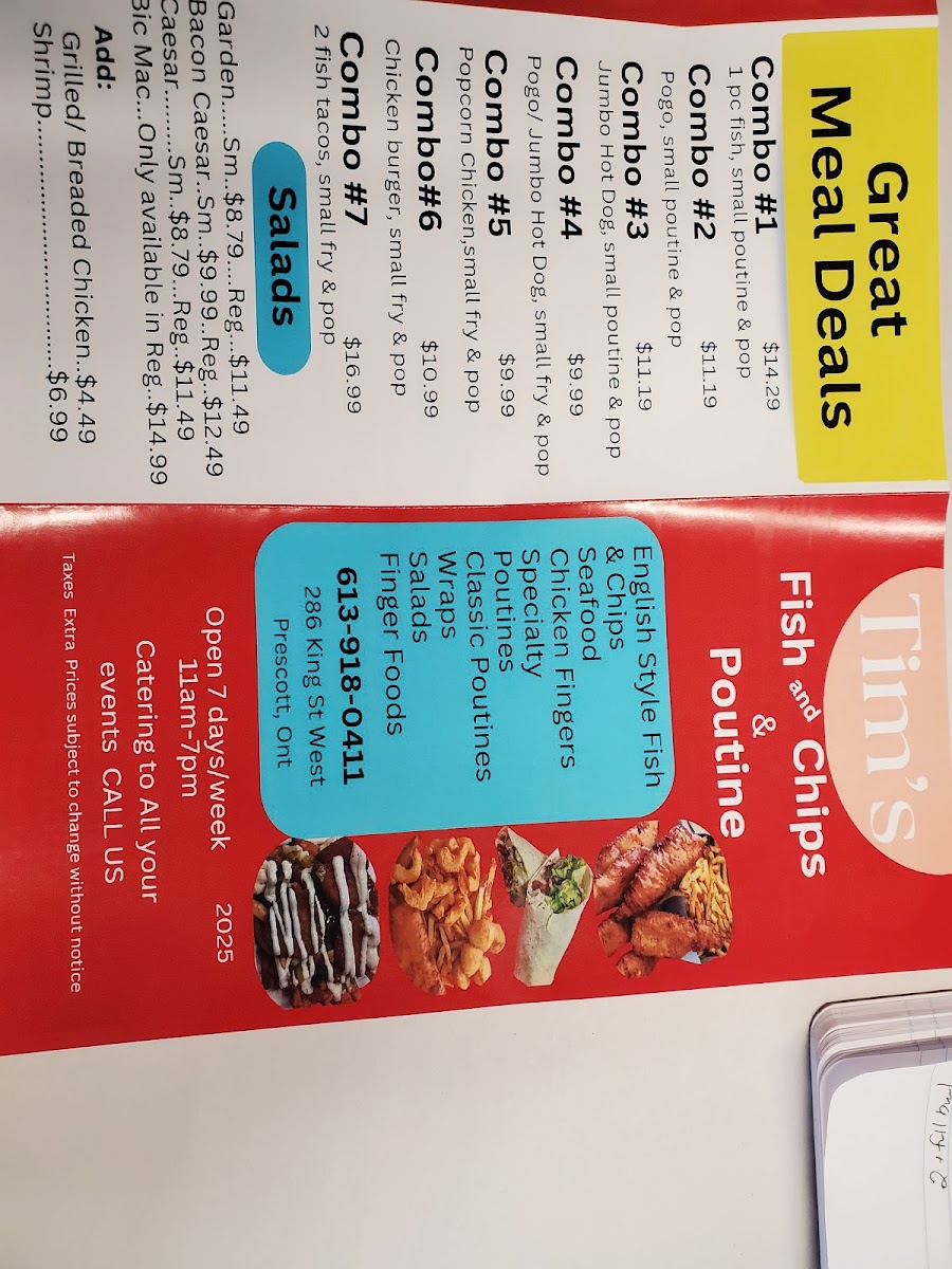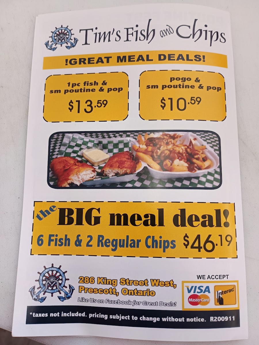 Tim's Fish & Chips and Poutine Menu