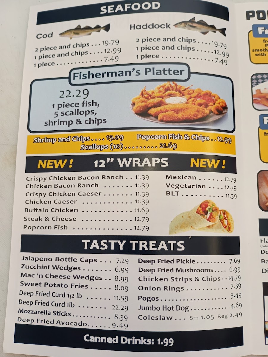 The menu highlights include favorites like crispy Haddock and Chips, a range of poutines including the popular Popcorn Chicken Poutine, and loaded fries with plenty of toppings. You’ll also find snackable sides such as deep-fried cheese curds, zucchini wedges, and mozzarella sticks that pair well with the relaxed and friendly atmosphere of this fast food spot.